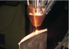 下圖為激光熔覆應(yīng)用與受損的渦輪葉片,把葉片頂端修補到原先的高度。熔覆過程中,激光束在葉片頂端形成很淺的熔池,同時金屬粉末沉積到葉片頂端形成焊珠。在電腦數(shù)值控制下,焊珠層迭,使熔覆層增長。圖為待打磨處理的葉片外觀形貌。作為對比,右圖給出了手工熔焊的葉片,它必須進行額外的后期處理。葉片頂端要進行放電加工以顯露出冷卻工程中形成的空隙,而激光熔覆省去了這些修補工作,從而大大減少了時間很成本。
