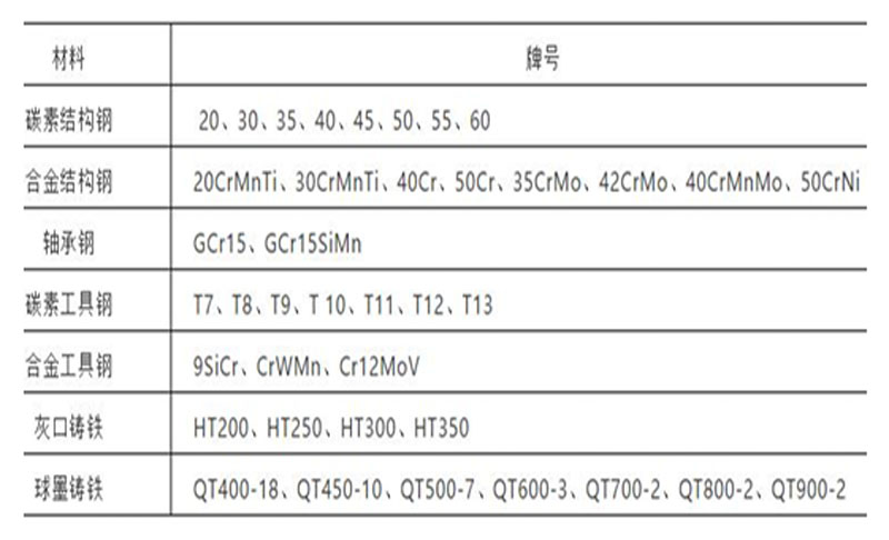 3、激光淬火常用材料
