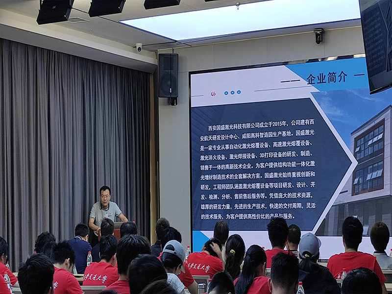 隨后,技術總監(jiān)呂文輝簡單介紹了公司的概況:“西安國盛激光成立于 2015 年,經(jīng)過多年的發(fā)展,已經(jīng)成為一家專業(yè)從事自動化激光熔覆設備、高速激光熔覆設備、激光淬火設備、激光焊接設備、3D 打印設備研發(fā)、制造、銷售于一體的高科技企業(yè)。我們始終秉持著創(chuàng)新驅(qū)動、質(zhì)量為本的理念,致力于為客戶提供結(jié)構功能一體化激光增材制造技術的全套解決方案。他還著重介紹了西安國盛激光在激光行業(yè)所取得的豐碩發(fā)展成果,如在激光熔覆、激光淬火、激光清洗及 3D 打印等核心技術上的創(chuàng)新突破,以及這些技術在石油、化工、鋼廠、航天等多個重要領域的成功應用案例。最后,呂文輝總監(jiān)語重心長地勉勵在場的大學生們,要珍惜在校時光,努力豐富知識儲備,提升自身綜合素質(zhì),為未來更好地融入社會發(fā)展做好充分準備?!?/span>