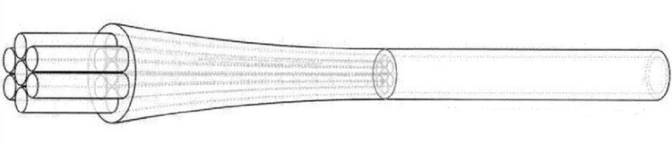 功率合束器的基本結(jié)構(gòu)主要包括三個(gè)部分:輸入光纖、熔錐光纖束和輸出光纖。