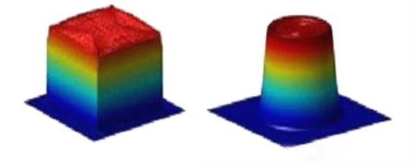 下圖所示分別為高斯激光輪廓和平頂激光輪廓的特點: