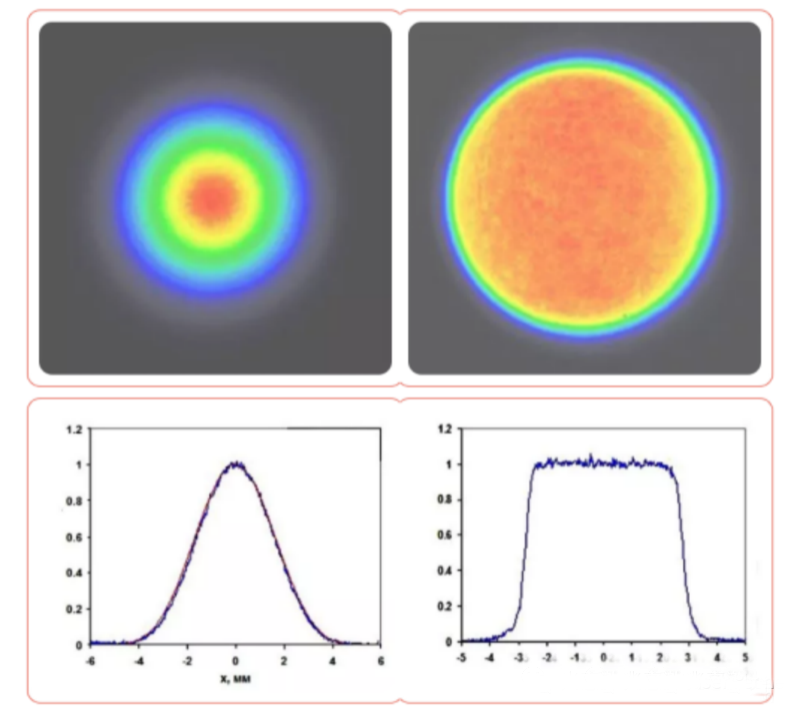 通常激光器發(fā)出的都是高斯光束,然后需要采用一些合適的光學元件改變其強度形狀才能得到平頂光束。
