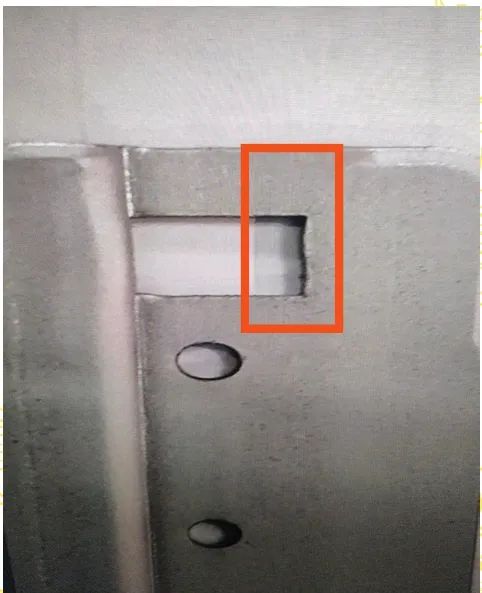 在鈑金切割過程中,切割的入刀點也自然會成為其回刀點。選擇合理的入刀點會降低產(chǎn)生切割波紋的概率。當(dāng)加工剛開始時,由于板材強(qiáng)度較好,切割入刀點及加工方向?qū)η懈畈粫a(chǎn)生太大影響,但當(dāng)加工接近尾聲時,對于剩余的待加工制品來說,其入刀點和加工方向?qū)η懈钍欠癞a(chǎn)生波紋有著重要影響。要保證制品靠近夾鉗端的強(qiáng)度,這樣才能更好地避免切割波紋的產(chǎn)生。當(dāng)入刀點選擇在制品中間位置時,無論是順時針切割還是逆時針切割,都會使制品的底部先被切開,造成板材應(yīng)力釋放,強(qiáng)度降低,穩(wěn)定性下降,最終導(dǎo)致制品局部切割波紋的產(chǎn)生,如圖6所示。而當(dāng)入刀點選擇在底部端點時,制品靠近夾鉗端被最后切斷,這樣板材應(yīng)力未被提前釋放,運(yùn)動穩(wěn)定,切割波紋產(chǎn)生的概率就會大大降低,如圖7所示。當(dāng)然,也要根據(jù)順時針切割還是逆時針切割選擇入刀點在左側(cè)底部還是右側(cè)底部。因此在編程時,關(guān)于切割入刀點及加工方向的選擇,只要盡可能保證制品靠近夾鉗端被最后切斷且運(yùn)動距離越短,越可以在一定程度上避免切割波紋的產(chǎn)生。