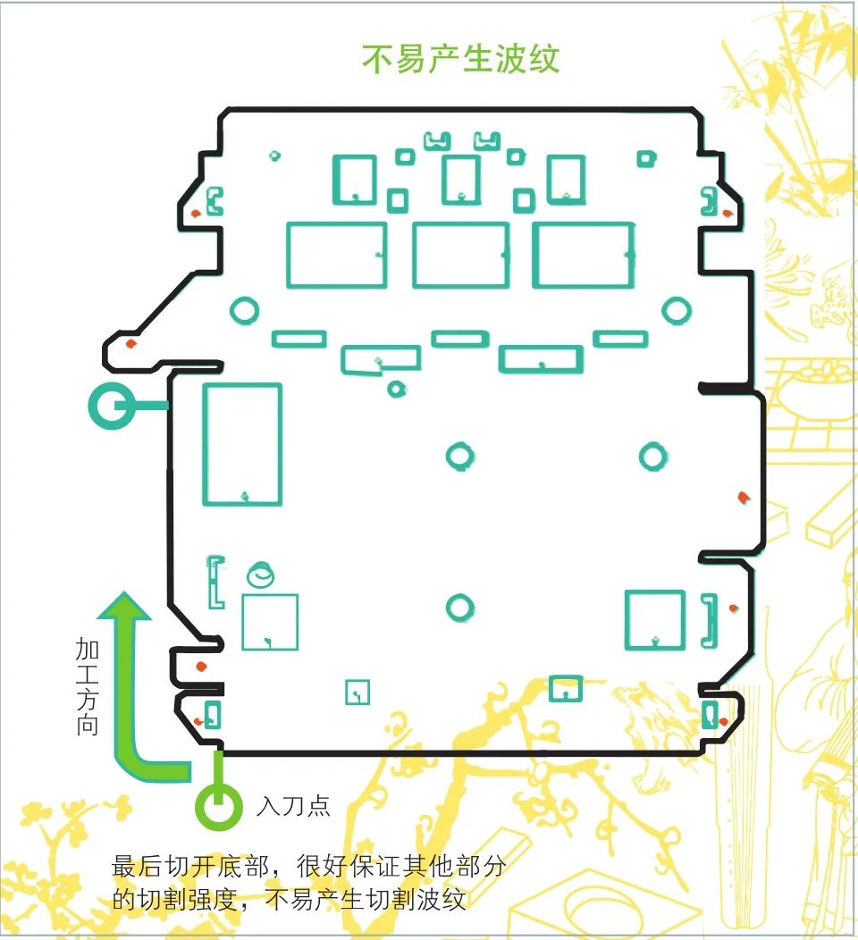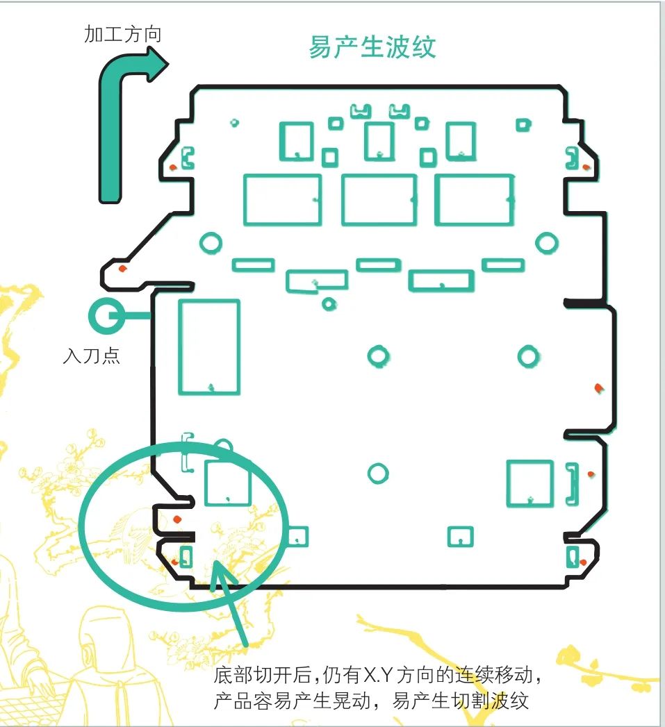 以上研究的影響因素是根據(jù)現(xiàn)階段出現(xiàn)的切割波紋的情況進(jìn)行分析而做的延伸分享。切割波紋的產(chǎn)生不是由某個因素影響產(chǎn)生的,是在多個因素共同作用下產(chǎn)生的,與制品的大小、尺寸、重量、加工速度等都有一定的關(guān)系。要想避免切割波紋的產(chǎn)生,需要在編程過程中做好全面考慮,從而降低切割波紋產(chǎn)生的可能性。