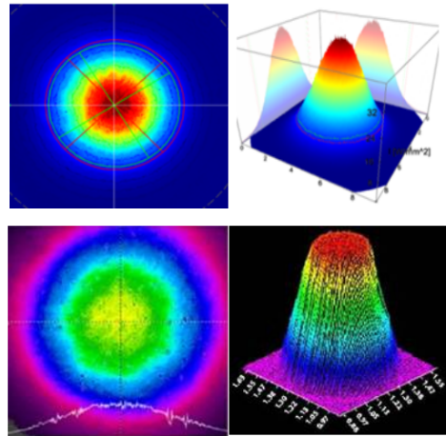 單模組和多模組萬瓦光纖激光器光束圖對比(上2為單模組,下2為多模組)