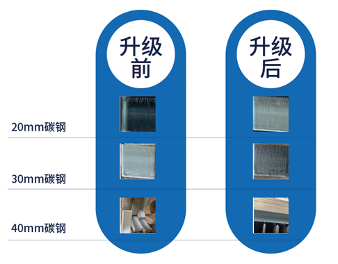GW光惠激光在光束模式優(yōu)化也一直未止步,于2019年推出HBF厚板切割模式后,2022年7月進(jìn)一步升級為CHF(Cohesion High-Brightness Flat-Top)凝態(tài)高亮平頂技術(shù),通過獨(dú)立研發(fā)的凝態(tài)光束技術(shù)可以使輸出的光亮度平頂光束的能量分布與其他特性表現(xiàn)的十分穩(wěn)定,不易受內(nèi)外部波動(dòng)因素影響,使厚板切割性能更加卓越可靠,以20kW的切割效果為例,效果所示如下: