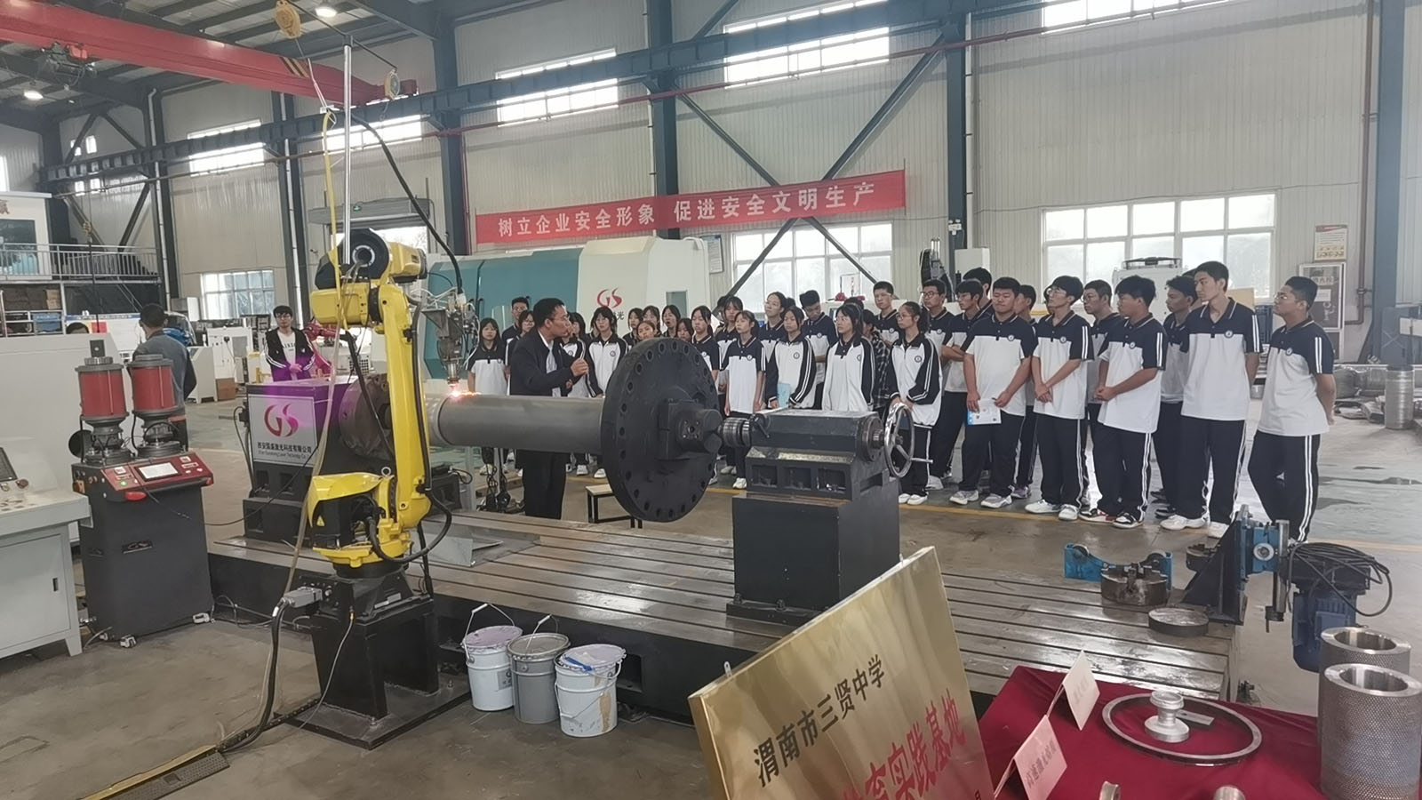 2023年9月21日上午9點渭南市三賢中學(xué)一行到達西安國盛激光工廠參觀,讓同學(xué)們進一步了解了先進制造工藝,更加直觀、全面地了解了生產(chǎn)車間和產(chǎn)品的相關(guān)知識,以及行業(yè)地位及產(chǎn)品優(yōu)勢的基本情況。國盛激光技術(shù)總監(jiān)呂文輝和工廠廠長賀毅陪同參觀講解。